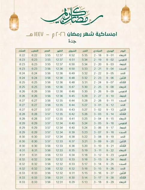 إمساكية رمضان 2026 في جدة