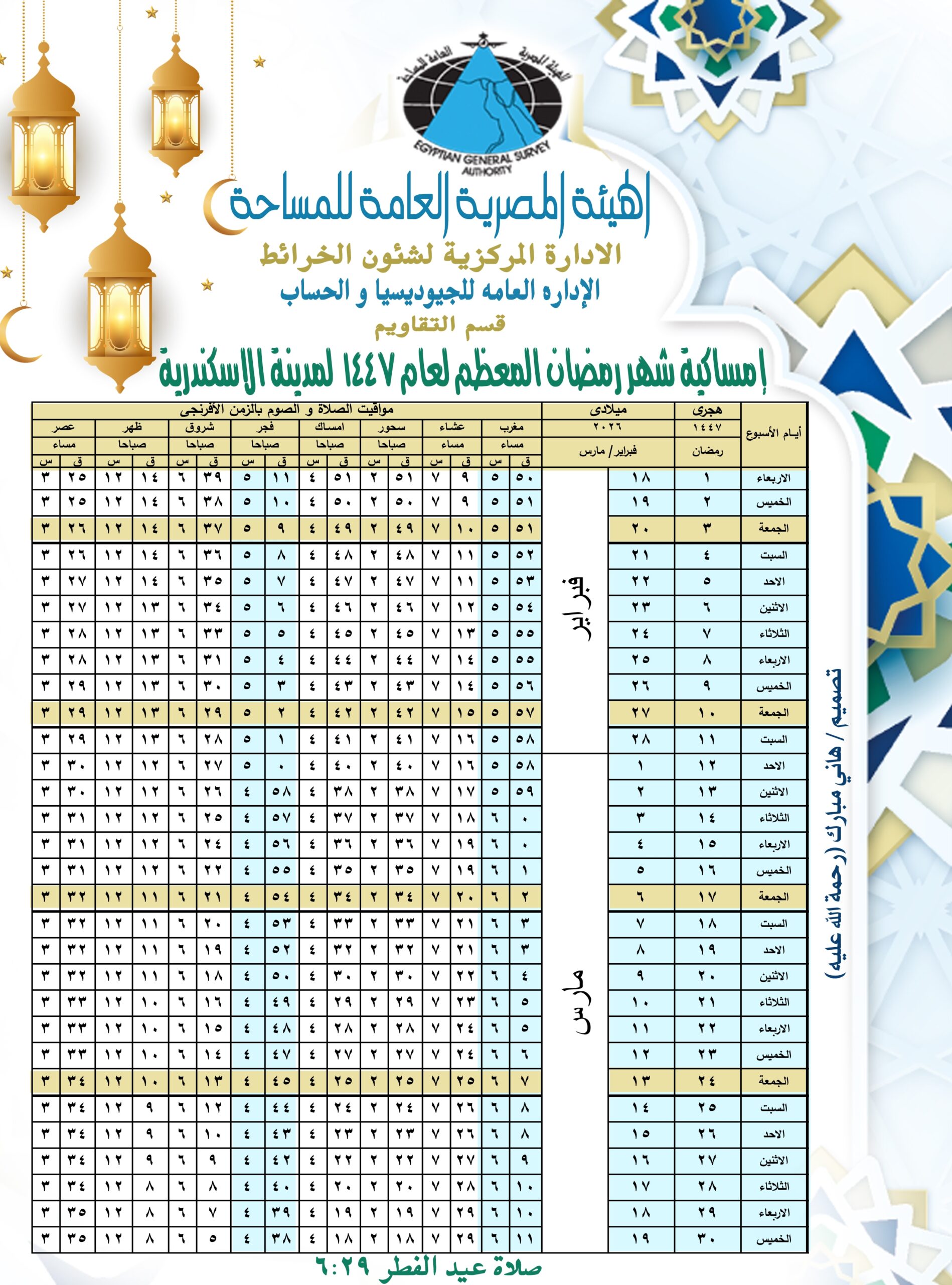 إمساكية رمضان 2026 الإسكندرية