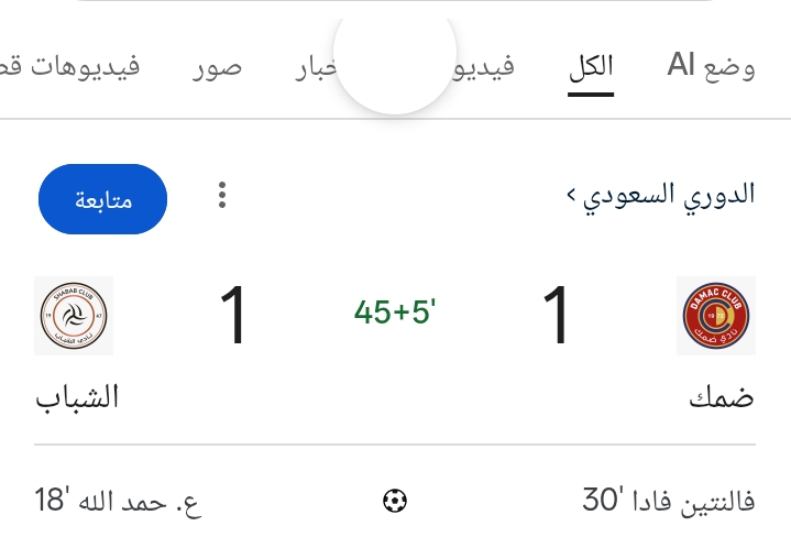 حمد الله يفتتح التسجيل.. نتيجة مباراة الشباب وضمك في دوري روشن 2026 الجولة 23 الشوط الأول