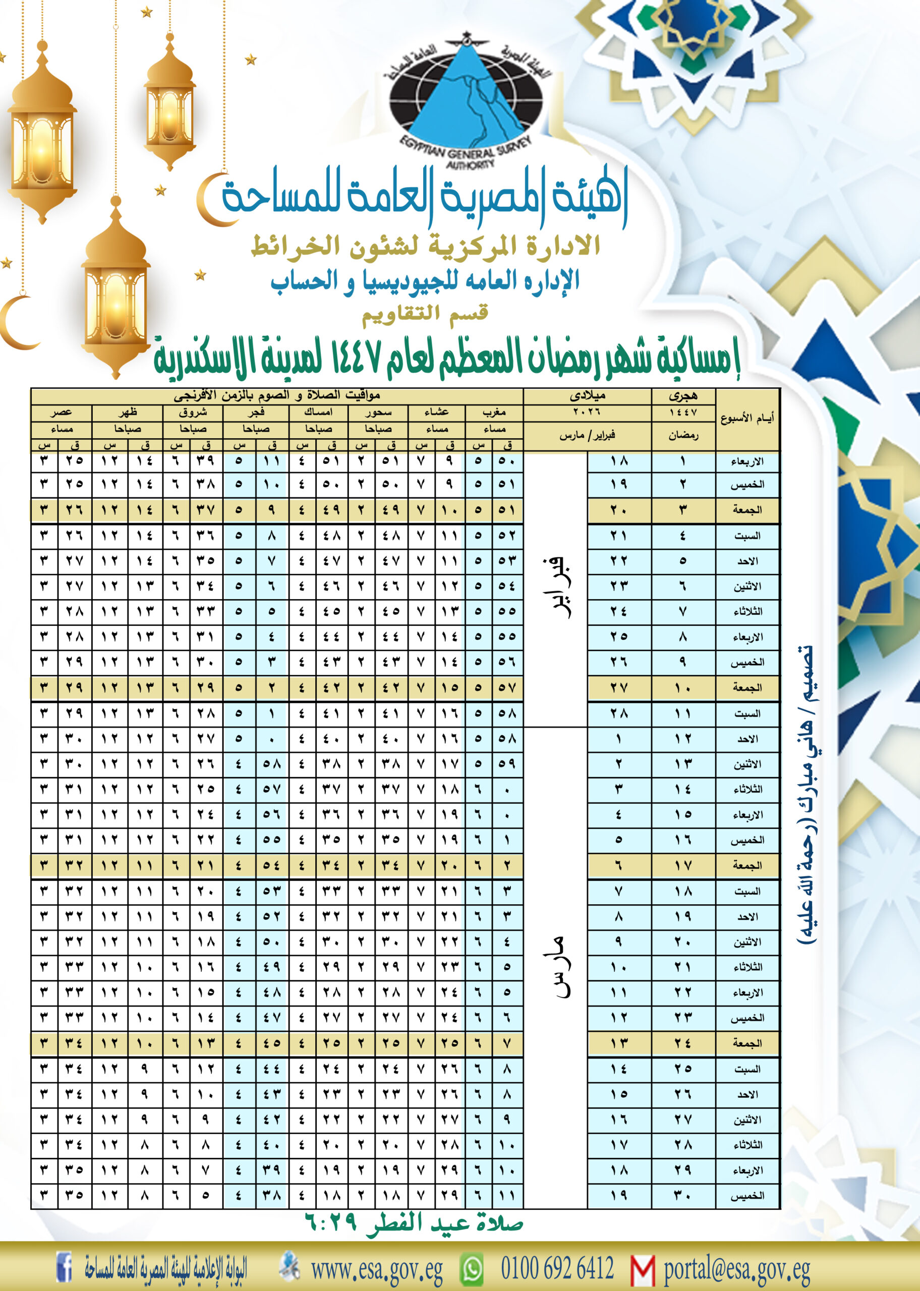 إمساكية رمضان 2026 في الإسكندرية