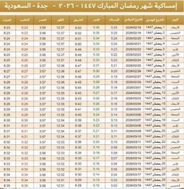 إمساكية رمضان 2026 في جدة