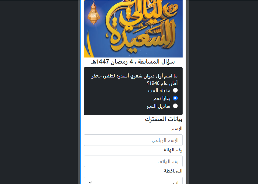 - اختيار قسم المسابقات الرمضانية من القائمة الرئيسية.