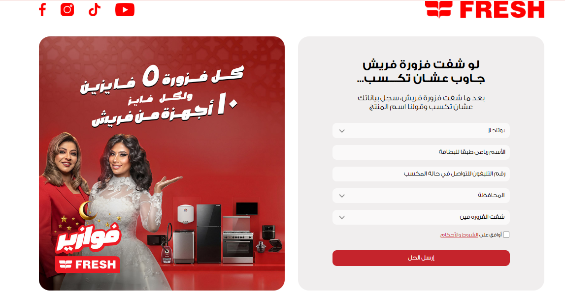 1. زيارة الموقع الإلكتروني الرسمي المخصص للمسابقة حصريًاhttps://fazoura.fresh.com.eg/.